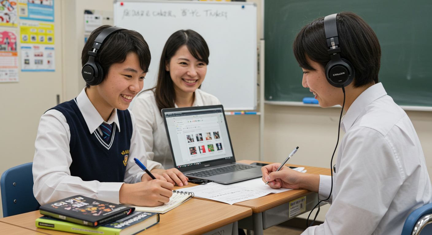 シャドーイングと音読の徹底も効果的です。シャドーイングとは、音声を聞きながら、ほぼ同時に声に出して真似る練習法です。教師がそばで指導することで、正確な発音やイントネーションを習得しながら、文章を即座に理解する力を高めます。これはリスニング力の向上に直結します。